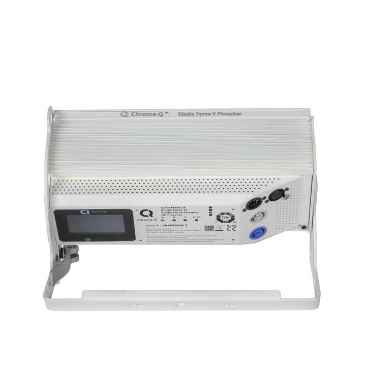 The new Chroma-Q® Studio Force V 12 Phosphor™ is a 3,200 - 5,600K CCT, variable white fixture which utilises innovative LED technologies found in the Studio Force™ range to provide an equivalent soft edge output to a fluorescent fixture - up to 4,200 lumens - developed specifically for use in TV, film and broadcast studio environments. Other features include fine-tuning of the green & magenta tints and frequency for camera, an extremely smooth uniform wash, extra soft beam, theatrical grade dimming, and laboratory calibration to match Black Body Locus. Designed for practicality, the unit is equipped with a manual control mode, colour touch screen interface, fanless, studio, and full modes for maximum control of the units and a range of optional accessories.