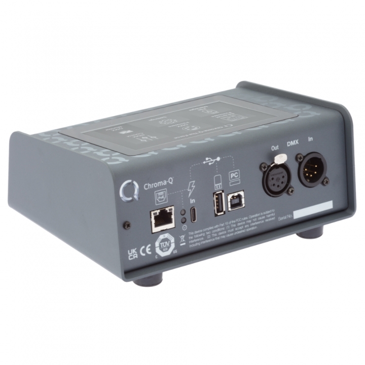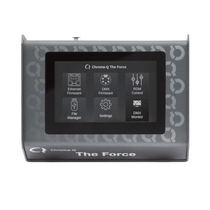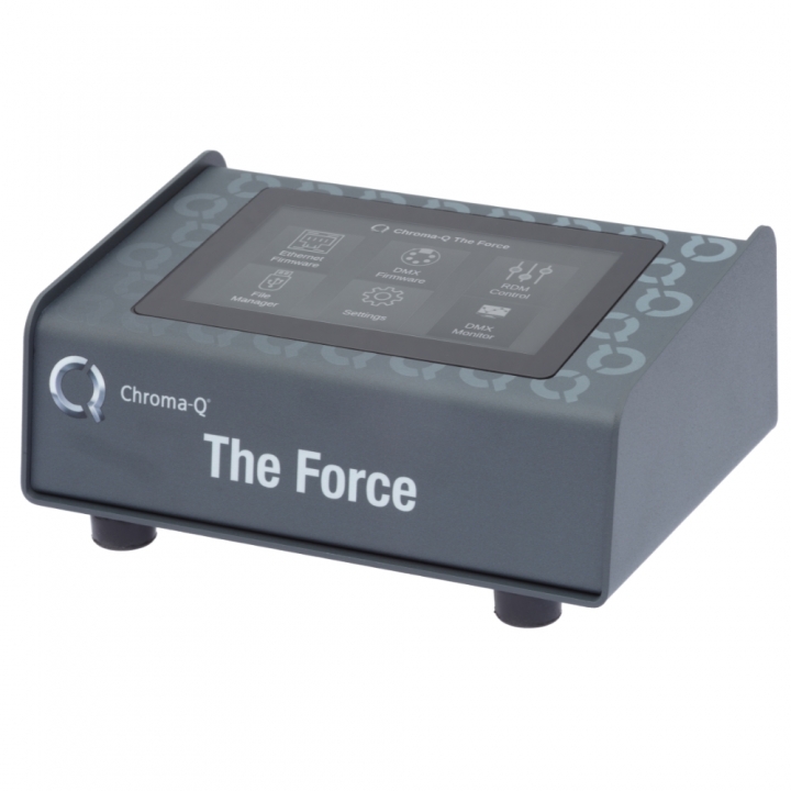 “Chroma-Q The Force”, the versatile multi-tool designed for the dedicated lighting professional. This robust device streamlines the firmware update process across a wide range of Chroma-Q products, including the 2inspire series. With the capacity to store numerous firmware versions for various products, “Chroma-Q The Force” ensures that your equipment is always up-to-date, whether through RS485 or Ethernet connections. Additionally, its RDM management capabilities allow for remote addressing and configuration of RDM-compatible devices, while the integrated DMX viewer provides real-time monitoring of DMX signals, making it an indispensable tool for service centers, rental shops, and road crews alike.